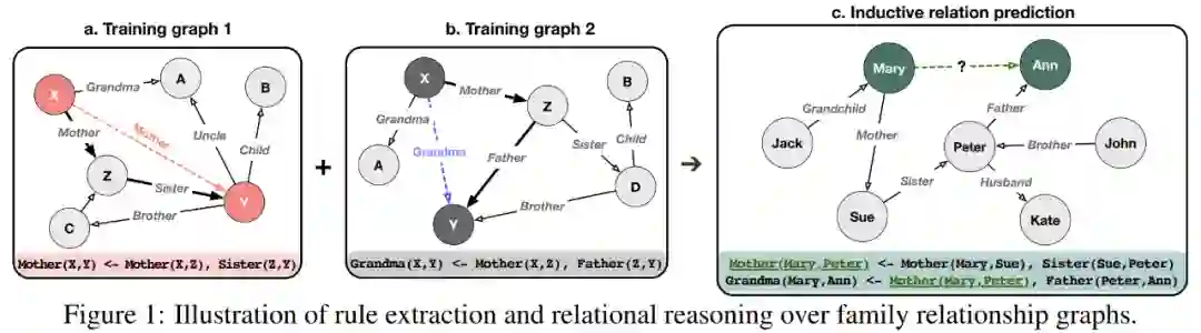 本文所关注的系统性(Systematicity)要求具有强系统性的模型能够训练小规模任务并推广到大规模任务,如图所示,仅在 a&b 上训练的强系统性模型,应当能够解决 c 中的问题。举例来说,从 a 和 b 中可分别习得规则 (1) Mother (X,Y) ← Mother (X,Z), Sister (Z,Y),和规则 (2) Grandma (X,Y) ←Mother (X,Z), Father (Z,Y)。则在 c 中,我们能根据规则 (1) 得到 Mary 是 Peter 的 Mother,然后根据规则 (2) 得到 Mary 是 Ann 的 Grandma。
