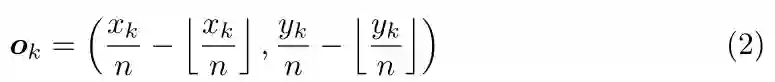 通常全卷积的网络的输出会对输入图像下采样n倍,原图上的点(x,y)在热图上的坐标为(⌊x/n⌋,⌊y/n⌋)。当将热图上的点对应到原图上时,可能会损失精度。因此网络还预测了每个点恢复后的偏移: