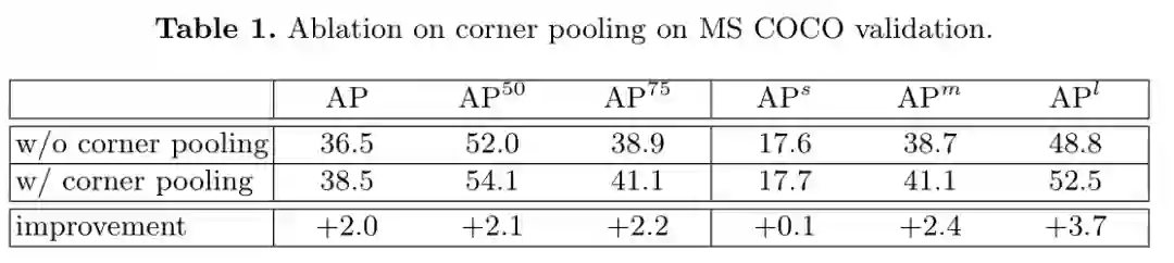Corner Pooling对预测中,大尺寸目标很有帮助。