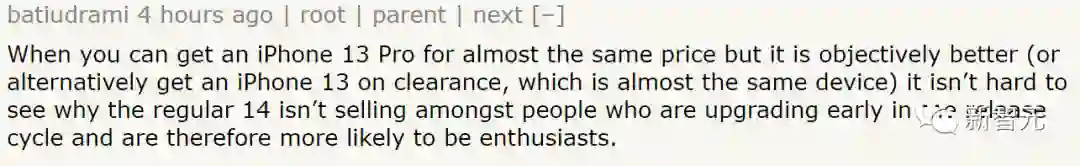 不过,这次疫情中,只有14 Pro和14 Pro Max受到较大影响,14和14 Plus却没有泛起水花。网友表示:「当13 Pro价格和14相比几乎差不多而质量更好时,不难理解为什么14根本卖不动。」
