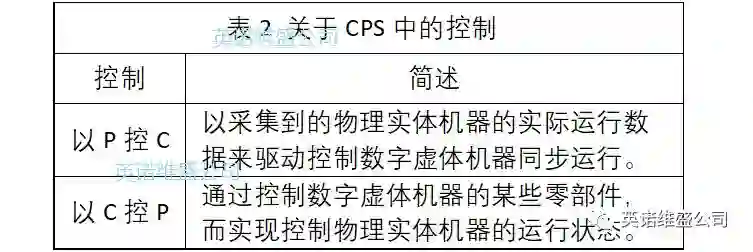 当数字虚体与物理实体在时空状态上都相像之后,距离CPS还有一步之遥,即控制。从物理实体一侧,是否能实现对数字虚体的控制(以P控C)?反之,从数字虚体一侧,是否能实现对物理实体的控制(以C控P)?尤其是“以C控P”,是判断是否实现了CPS的核心要求。关于在CPS中“C”与“P”的控制,如表2所示。