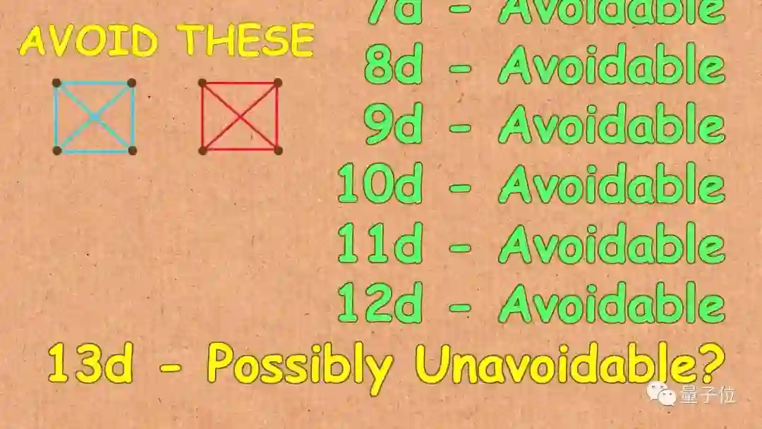 通过具体的例子,我们发现2维、3维中立方体中,确实能找到这样的涂色方法、但是数学家们发现,当维度n大于一个数后,就再也找不到符合要求的涂色方法了。