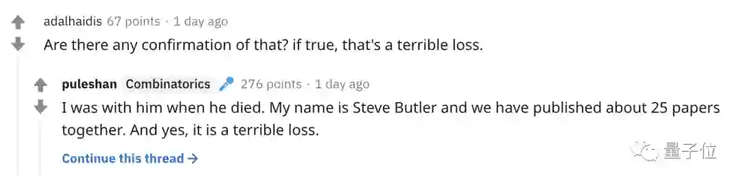 与葛立恒合作过25篇论文的数学家Steve Butler也在社交媒体上证实了这一消息。