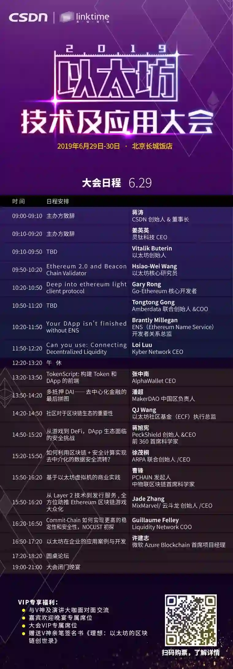 V神来北京啦!6月29-30日,2019第二届以太坊技术及应用大会将在北京重磅开启,届时V神将携以太坊核心团队与国内外区块链大咖带来前所未有的以太坊开发干货,包括: