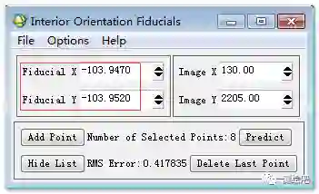 图2 Interior OrientationFiducials(内定向)窗口