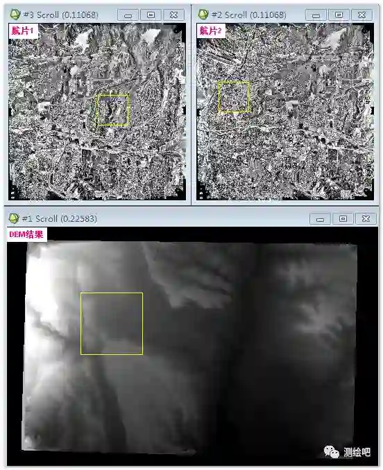 图11 立体像对航片和提取的DEM结果
