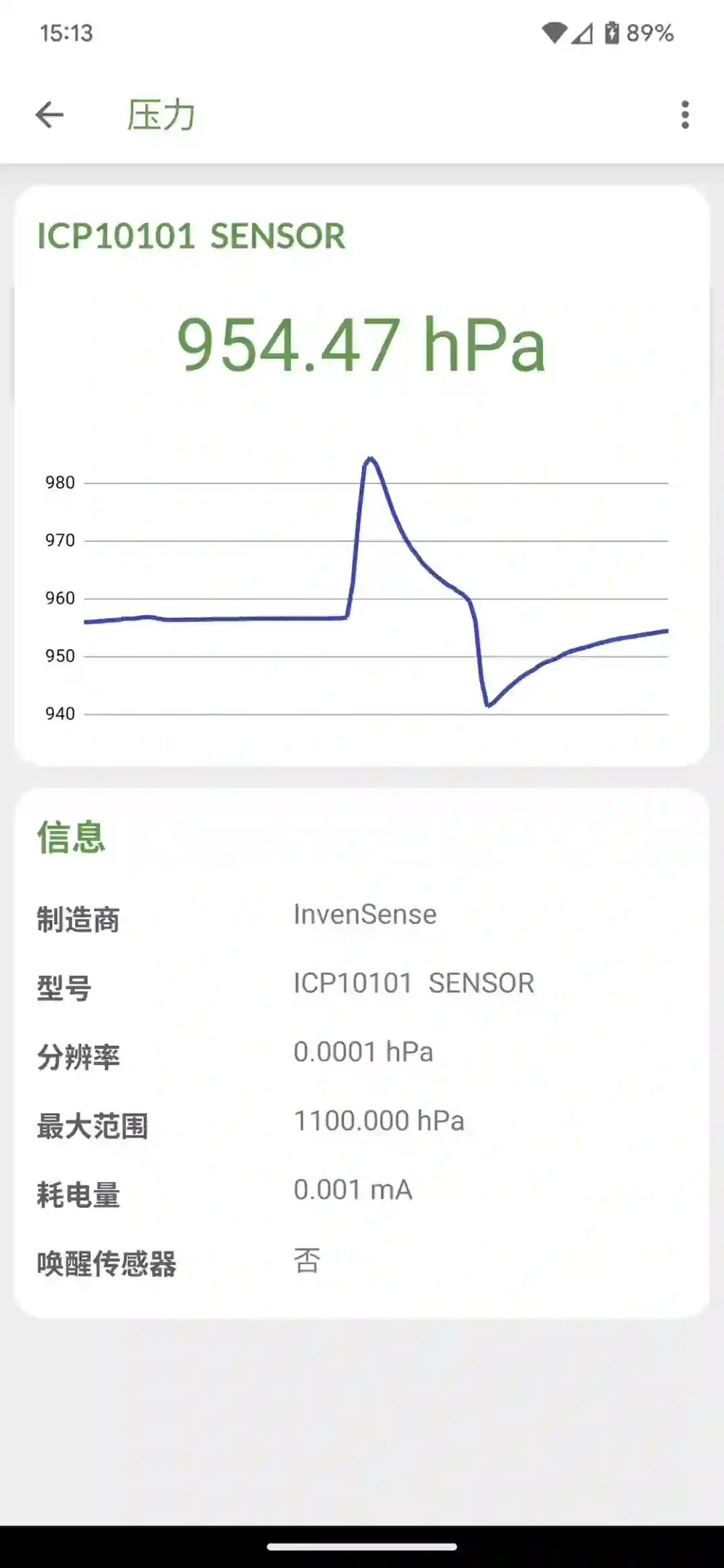 因为现代 Android 设备往往都内置了气压传感器,我们也可以通过机身内部气压传感器读取到的数值变化来判断机身气密性的完好程度。具体操作方法如下: