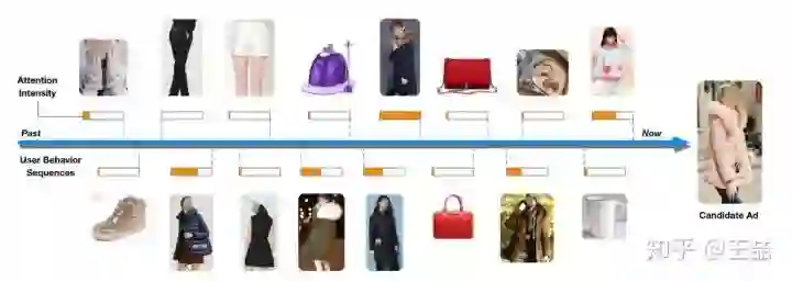 但是我们仔细想一想我们自己的购买过程,其实每个用户的兴趣都是多样的,女生喜欢买衣服包包,也喜欢化妆品,甚至还为自己男朋友挑选过球衣球鞋,那么你在买大衣的时候,真的要把给男朋友买球鞋的偏好考虑进来么?具体到本文的例子中,在预测大衣的CTR这件事情上,用户浏览过杯子,跟用户浏览过另一件大衣这两个行为的重要程度是一样的吗?