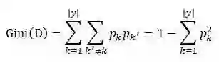采用和上式相同的符号,基尼系数可以用来度量数据集D的纯度。