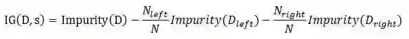 假设切分大小为N的数据集D为两个数据集D_left和D_right,那么信息增益可以表示为如下的形式。
