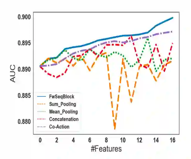 相比 CSAN,CAN 这样上线文信息相关的模型,FwSeqBlock 的引入仍可以带来一定的提升,证明了对用户历史行为做 field-wise 建模的有效性。