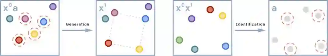 世界上的众多状态由多组实体及其属性和位置组成(比如下面的点,就具有位置和颜色属性)。用于“识别”的注意力掩膜表示模型对某些实体集的关注。