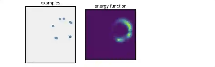 空间区域概念:给出2D示例点(左),推断该点上的能量函数(中间),然后使用能量上的随机梯度下降来生成新的点(右)