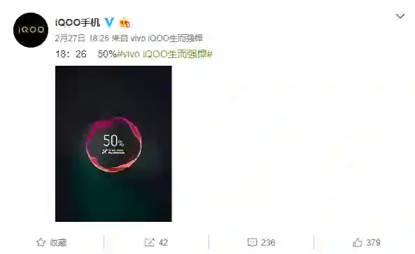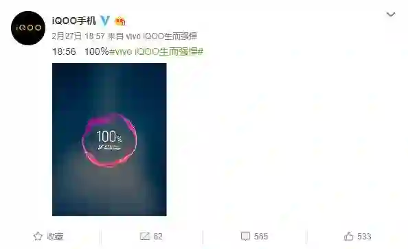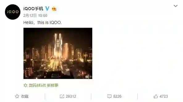 2月12日,iQOO 手机正式登场,vivo 官方账号也进行转发确认其子品牌亮相。