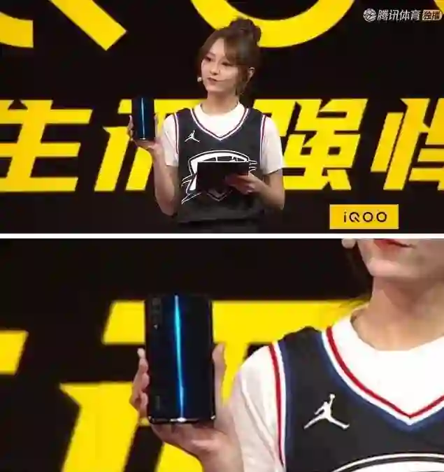 2 月 18 日,iQOO 真机首度亮相NBA直播间,从视频中可以看出该款手机采用的是深邃的黑蓝色,并带有竖条蓝色闪光纹路,采用后置三摄方案。