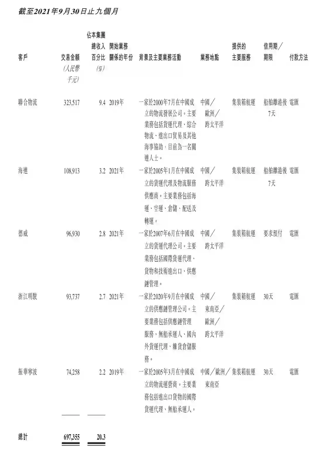 公司同样在招股书中表示,“根植于中国供应链是中联航运区别于大多数大型联盟航运企业的核心优势,在中联航运16年的发展中,已经与全球领先的高增长BCO(Beneficial Cargo Owner,有益的货主)和货运代理商建立了深层次的长期合作关系。”
