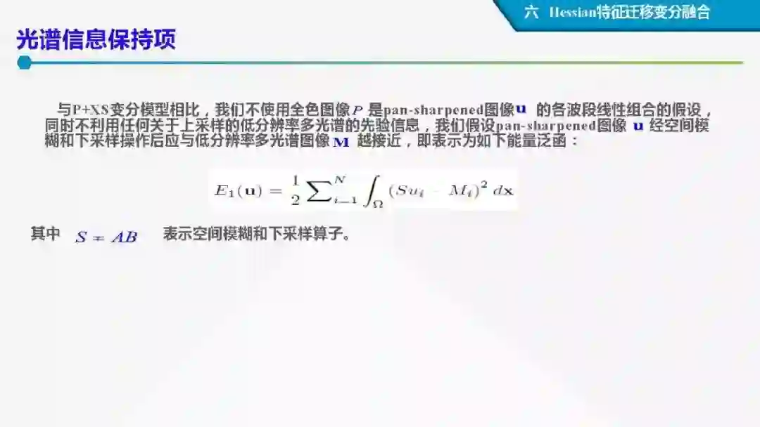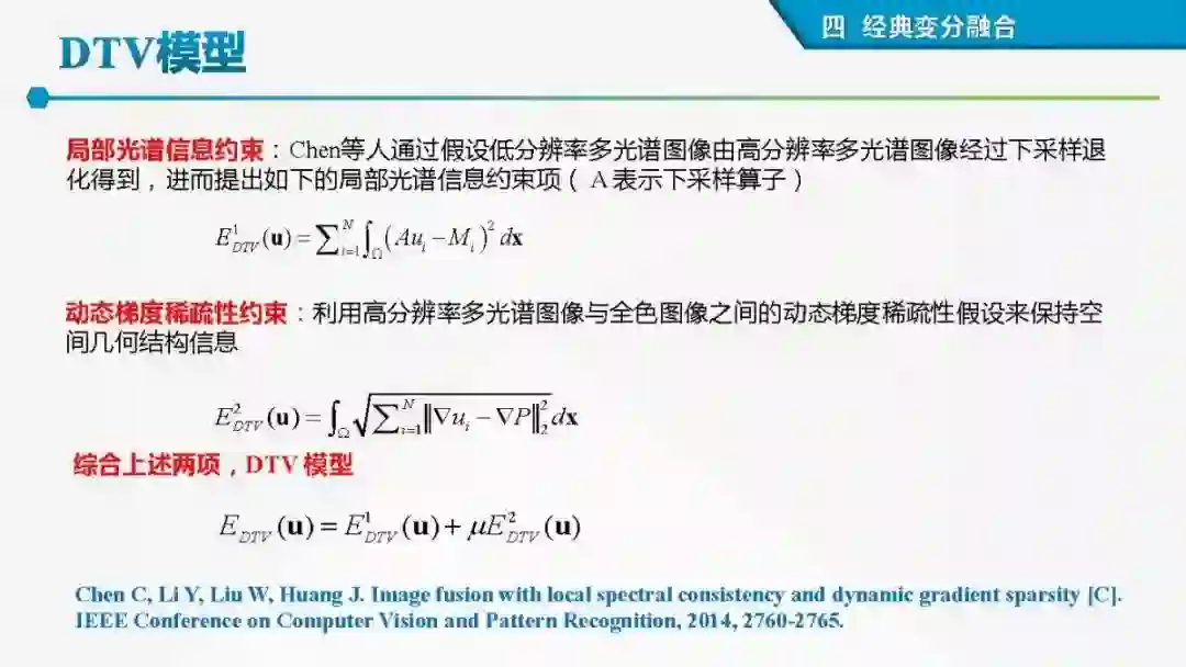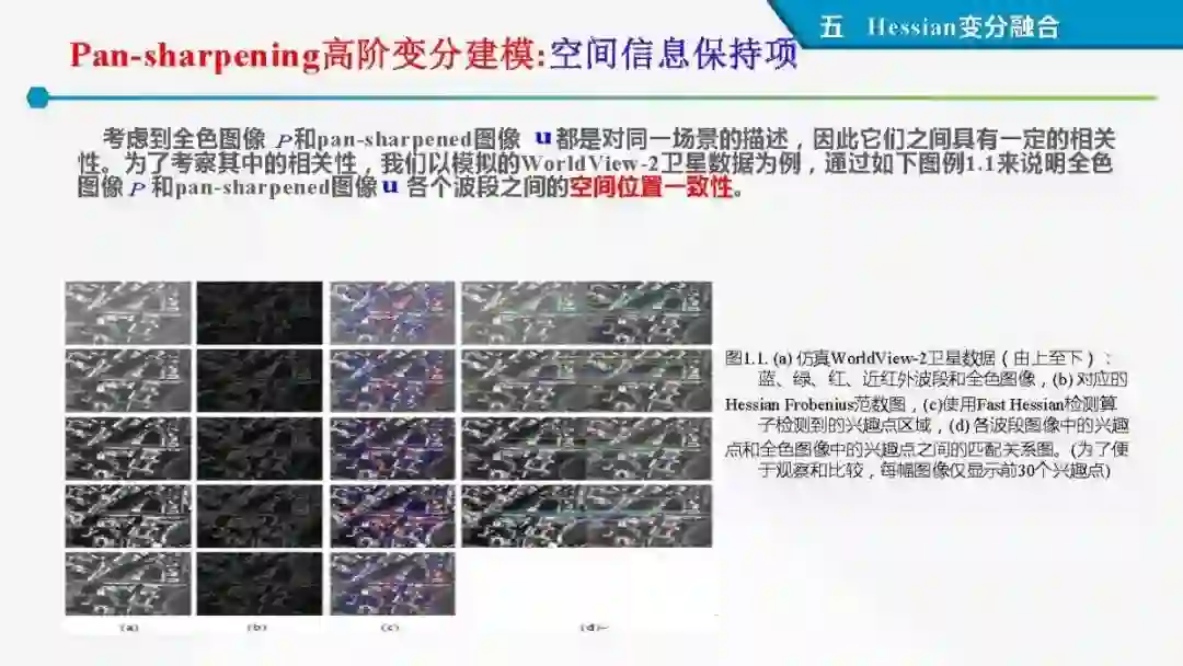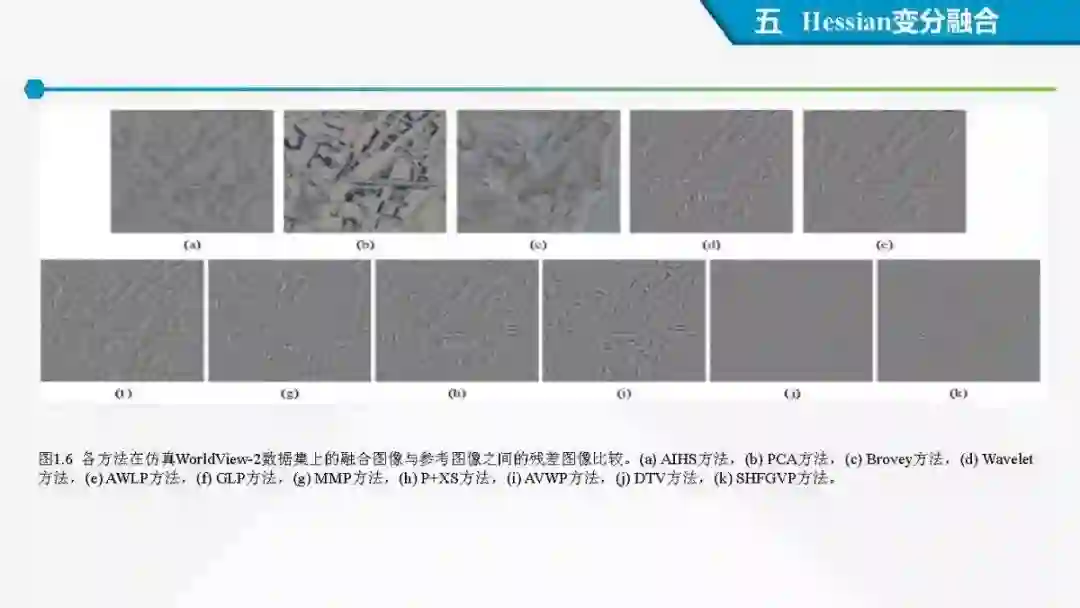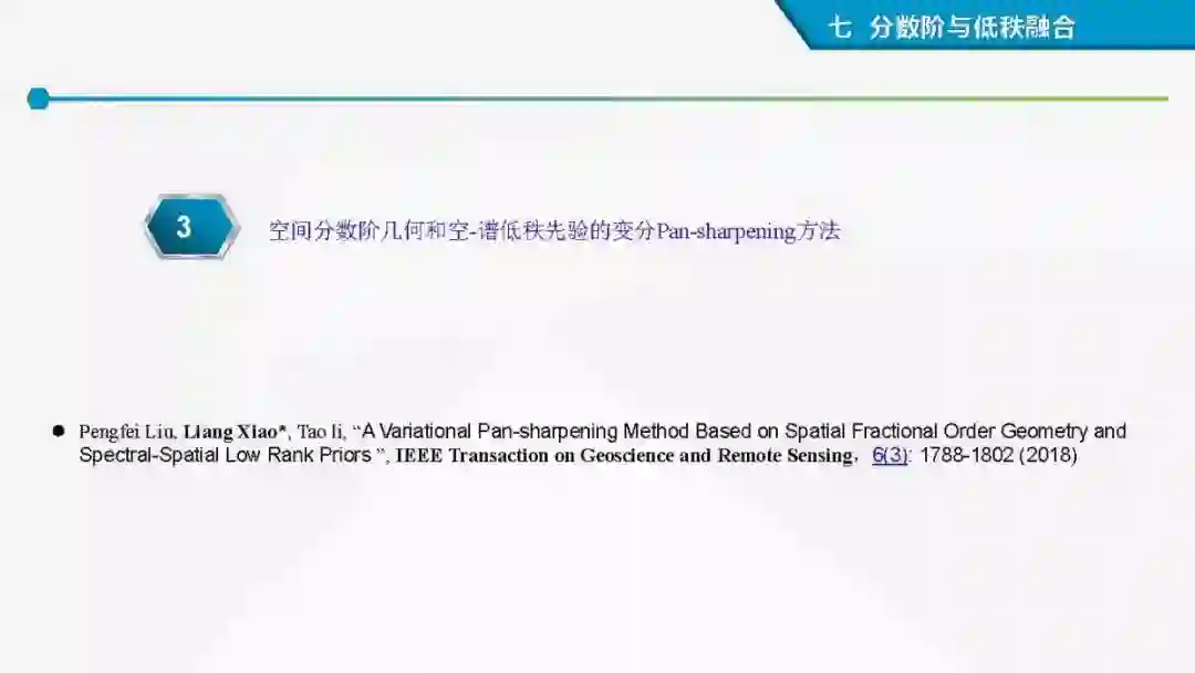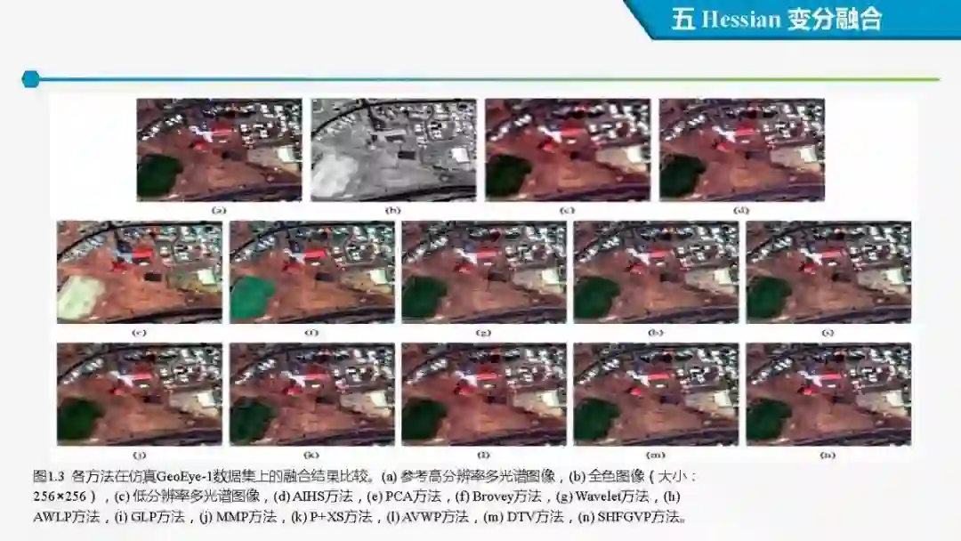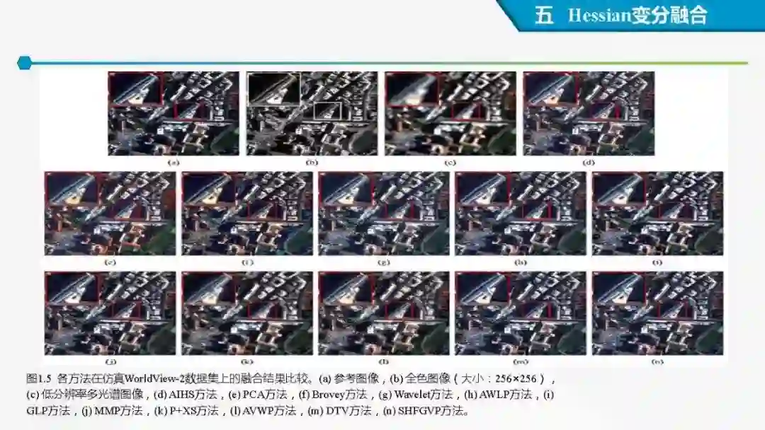 其中着重探索了一类基于变分模型的融合方法,这些方法背后的建模动机是将空谱图像融合建模为两路不完整(或欠采样)互补测量数据重建潜在图像的过程。重点论述变分融合计算体系与方法。其脉络涵盖低阶到高阶正则化,由整数阶到分数阶正则化的方法。