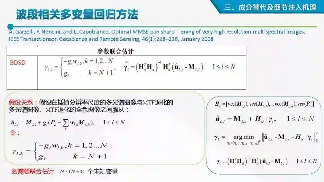 本PPT集中论述像素级空谱遥感图像融合,主要探讨多光谱与全色图像融合——Pansharpening 问题(简称MS+PAN融合)。