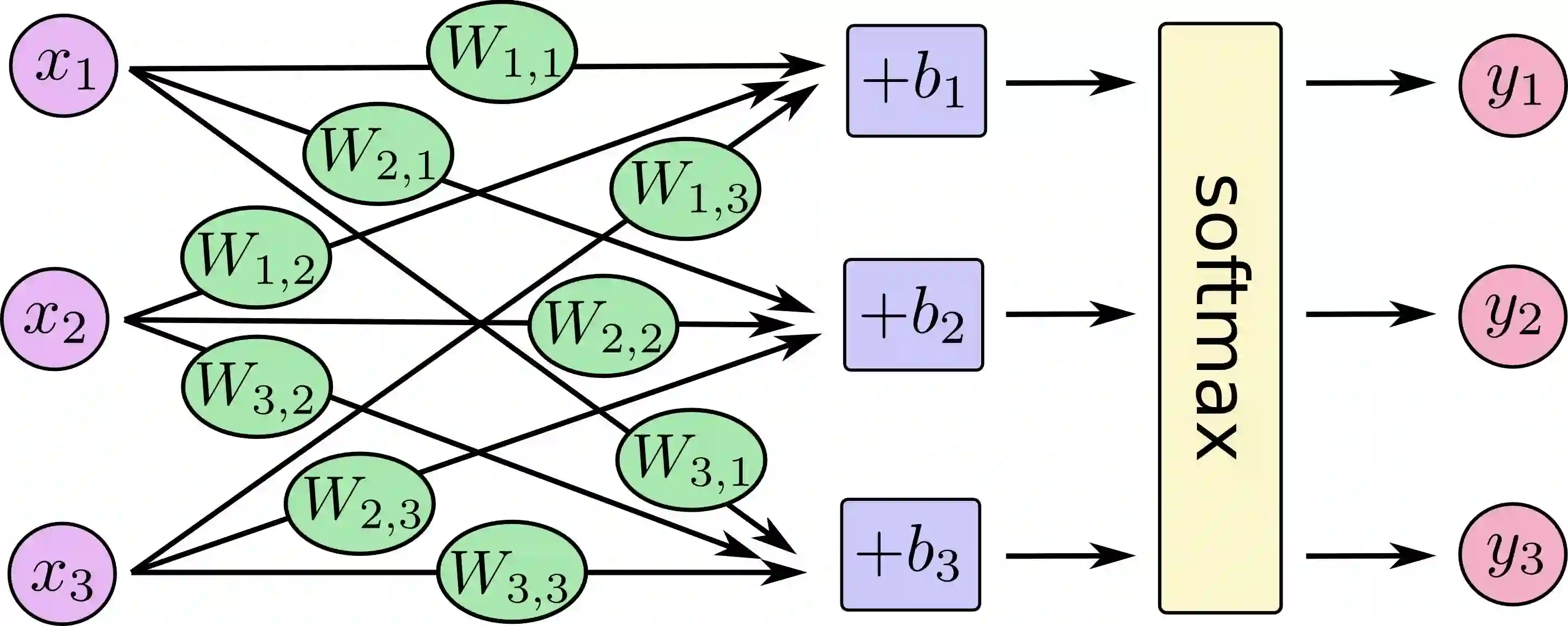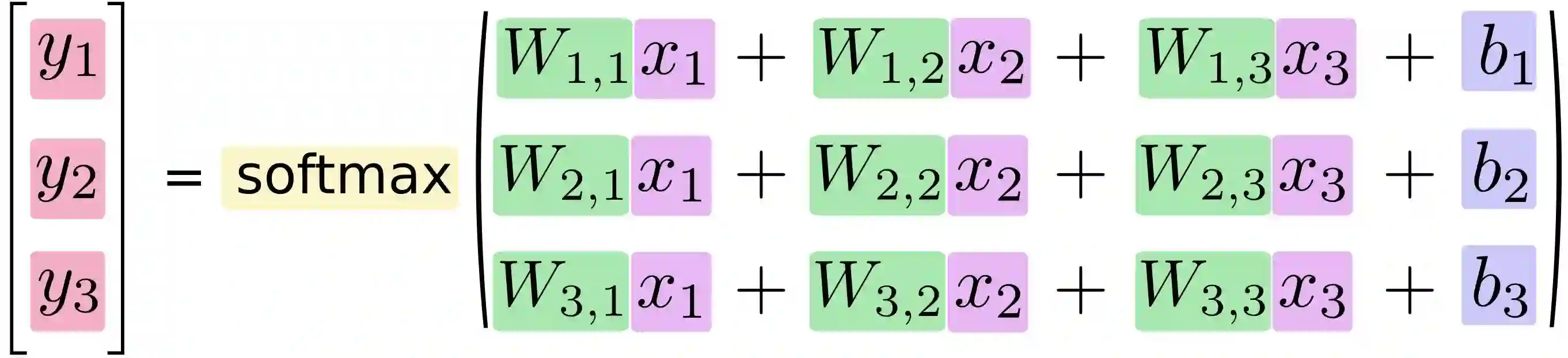 y = tf.nn.softmax(tf.matmul(x, W) + b)