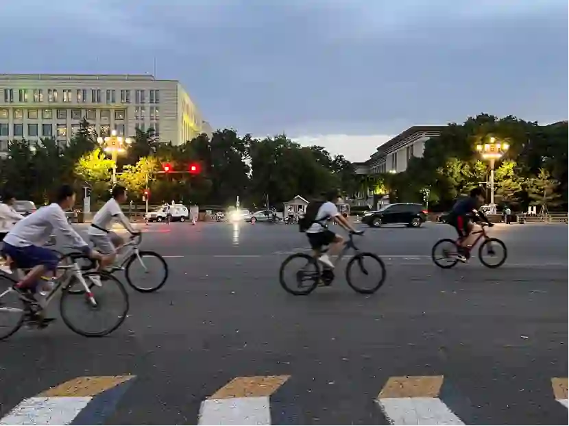 北京长安街骑车人群。摄影:胡楠楠