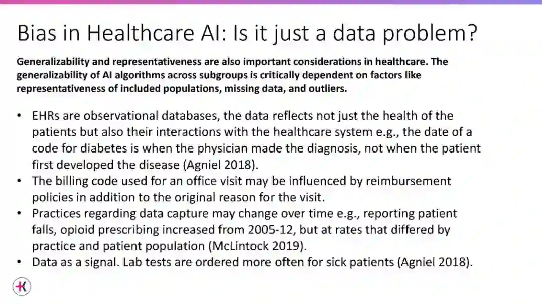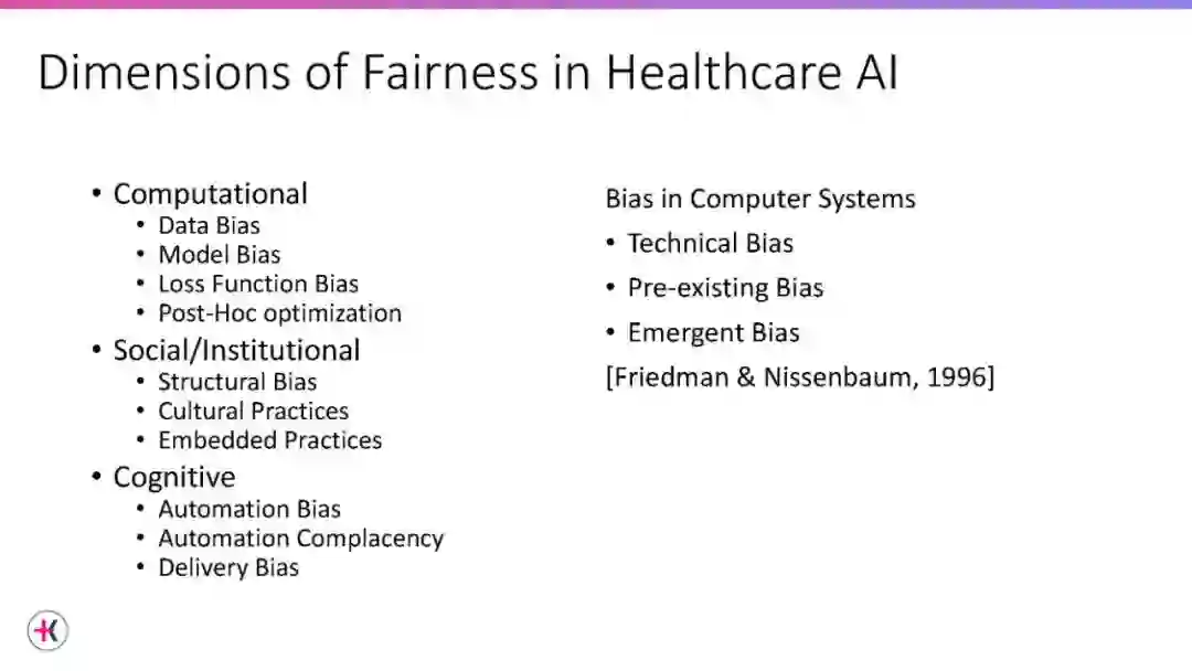 医疗保健中的偏见和公平问题已经存在了几个世纪。随着人工智能在健康领域的整合,在健康领域歧视和延续不公平和有偏见做法的可能性增加了许多倍。本教程侧重于医疗AI公平领域的挑战、要求和机会,以及与之相关的各种细微差别。医疗健康作为一个多方面的系统层面的问题,需要仔细考虑不同的公平概念。在本教程中,我们将在现实世界中部署机器学习模型,以及机器学习社区面临的各种挑战和机遇的背景下解决这个问题。