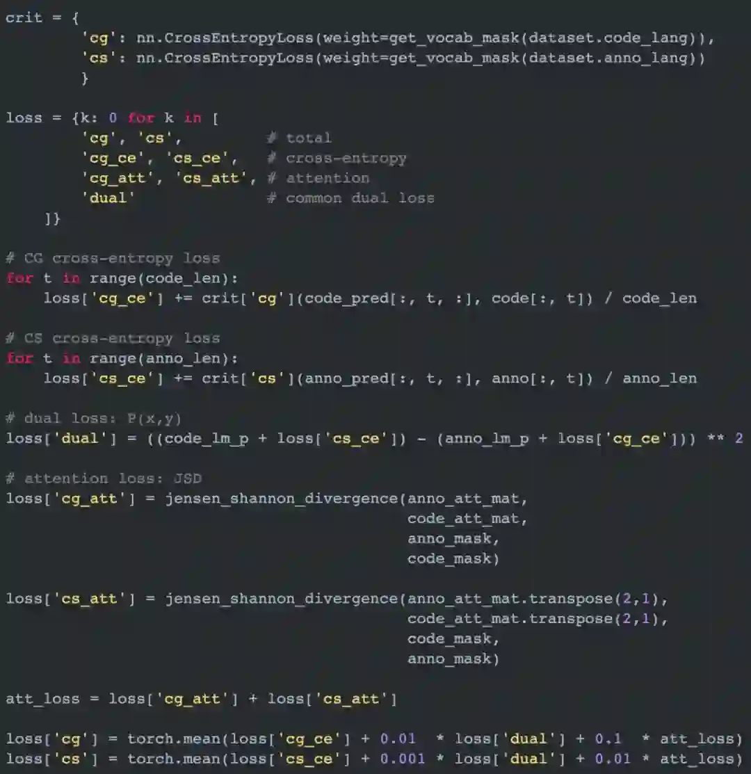 对偶损失函数,它度量的是代码与注释的概率相关性;