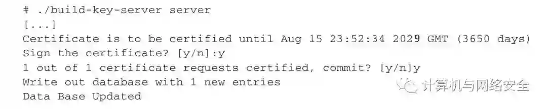 下一步将会顺序运行clean-all脚本以及build-ca脚本,使用pkitool脚本创建根证书。此时会要求对vars提供的验证设置进行确认: