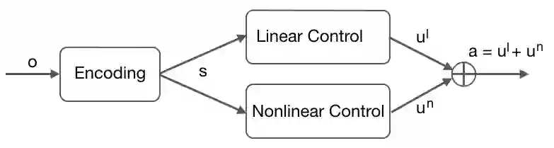 该架构概述非常简单; 它从环境中获取状态编码并将其提供给两个独立的流:线性控制流和非线性控制流。 这两个流可以被视为独立的子策略,其输出被融合为强化学习的策略网络。
