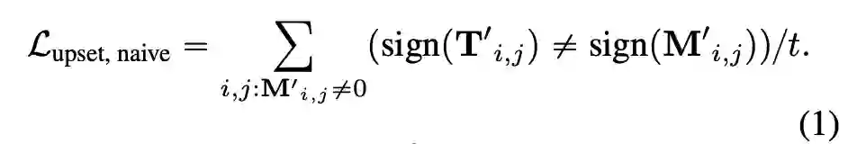 。然后有 ,为了不惩罚初始成对排序不可用的条目,仅在 M1 具有非零条目的位置比较 T1 与 M1。naive upset 损失被定义为: