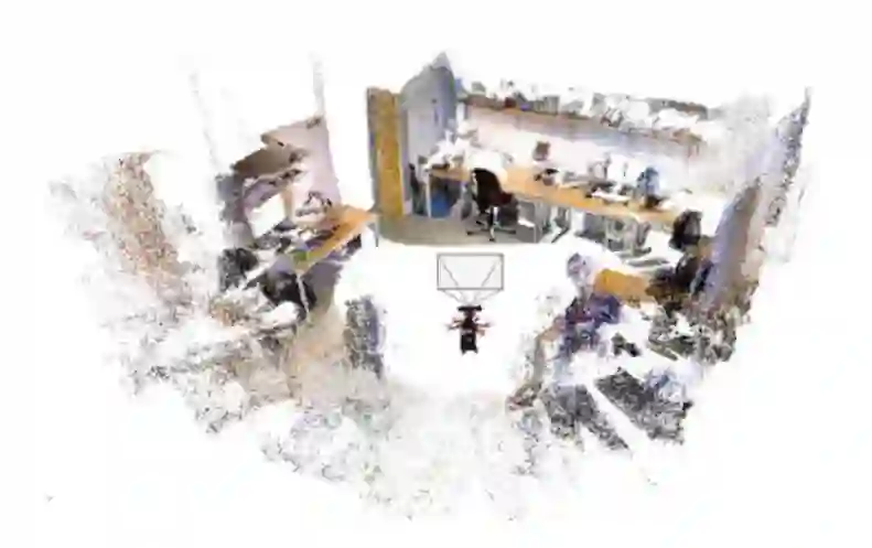 图1 使用我们提出的方法GCN,使用帧到帧相机运动估计(即,不使用关键帧和循环闭合)累积的RGB-D帧,用于关键点生成和匹配。数据是由一架绕着房间飞行的六架飞机上的RGB-D传感器收集的。