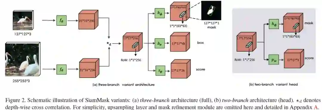 摘要:在本文中,我们将介绍如何用一种简单的方法实时地执行视觉目标跟踪和半监督视频目标分割。我们的方法,称为SiamMask,改进了流行的全卷积Siamese方法的离线训练过程,通过一个二值分割任务增加了它们的损失。经过训练,SiamMask完全依赖于单个边界框初始化并在线操作,生成与类无关的目标分割掩码,并以每秒35帧的速度旋转边界框。它不仅具有简单性、多功能性和快速性,还使我们能够在VOT-2018上建立一个新的最好的实时跟踪器,同时在DAVIS-2016和DAVIS-2017上展示出具有竞争力的性能和半监督视频对象分割任务的最佳速度。