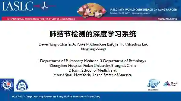 在白春学教授的带领下,本中心有两项研究获邀参加本次肺癌大会的展示。一是在人工智能的肺结节影像的早期诊断方面的研究;二是一项无创的电生理的肺结节早期诊断的多中心临床研究,接下来我简单介绍一下上述两项研究。