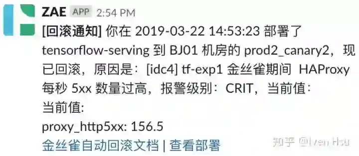 金丝雀出现异常,回滚时会自动通知开发者
