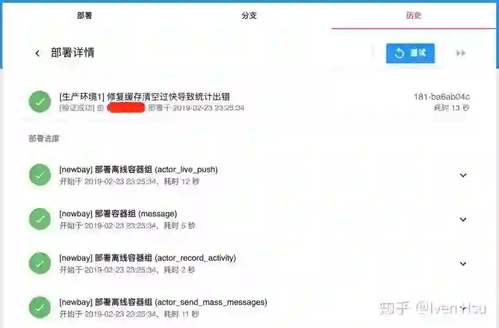 知乎部署系统由知乎工程效率团队打造,服务于公司几乎所有业务,每日部署次数在 2000 次左右,在启用蓝绿部署的情况下,大部分业务的生产环境上线时间可以在 10 秒以下(不包含金丝雀灰度验证过程)。