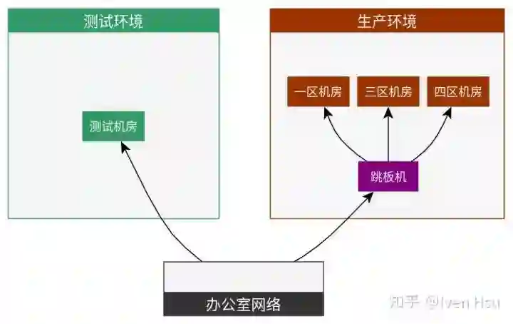 办公室网络:即知乎员工内部网络,可以直接访问测试环境,也可以通过跳板机访问生产环境服务器。