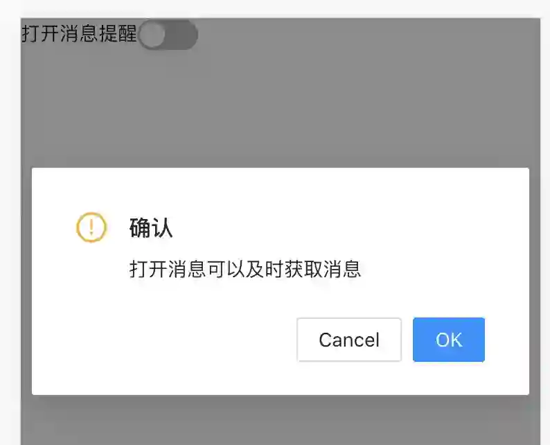 // 用户状态管理function useUserStatus() {const [status, setStatus] = useState();const fetchStatus = async () => {const res = await getUserStatus();setStatus(res);};useEffect(() => {fetchStatus();}, []);const updateStatus = useCallback(async (type, val) => {const res = await updateUserStatus(type, val);if (res) {console.log('设置成功');fetchStatus();} else {console.log('设置失败');}}, []);return [status, updateStatus];}// 二次提醒function useSecondConfirm(key, gapDay, confirmOptions = {}) {const [isConfirm, setIsConfirm] = useState(false);const showConfirm = useCallback(() => {const curr = Date.now();const lastDay = window.localStorage.getItem(`${key}_lastCheckDay`);if (!lastDay || diffDay(curr, lastDay) > gapDay) {setTimeout(async () => {tryToPopConfirm({title: confirmOptions.title,content: confirmOptions.content,onConfirm: () => setIsConfirm(true),});}, 300);window.localStorage.setItem(`${key}_lastCheckDay`, curr);}}, [gapDay]);return [isConfirm, showConfirm];}function useStatusWithSecondConfirm(type, gapDay, confirmOptions) {const [userStatus, setUserStatus] = useUserStatus();const [isConfirm, showConfirm] = useSecondConfirm(type, gapDay, confirmOptions);// 关闭状态二次提醒用户是否打开useEffect(() => {console.log(userStatus);if (userStatus && userStatus[type] <= 0) {showConfirm();}}, [userStatus]);// 确认后修改用户状态useEffect(() => {if (isConfirm) {setUserStatus(type, 1);}}, [isConfirm]);return [userStatus ? userStatus[type] : null, setUserStatus];}// 使用时function Component() {const [status, setStatus] = useStatusWithSecondConfirm('notice',1,{title: '是否打开提醒',content: '打开通知以避免错过重要信息'});return (<><label>打开消息提醒</label><Switchchecked={status}onChange={setStatus}/></>);}