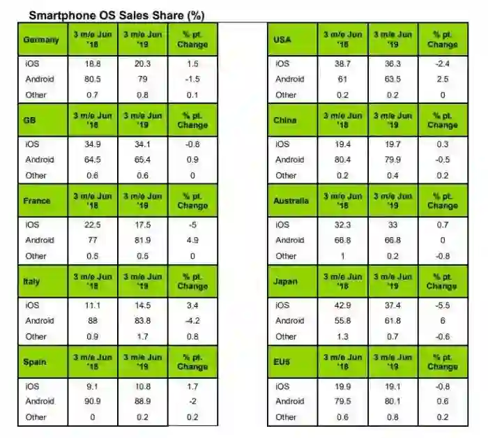 据Kantar提供的数据,虽然Android是世界范围内新用户购买智能手机的首选,苹果手机的忠诚度正在下降,但iPhone仍然在美国领先。iPhone数个型号都依然还是最畅销的型号。