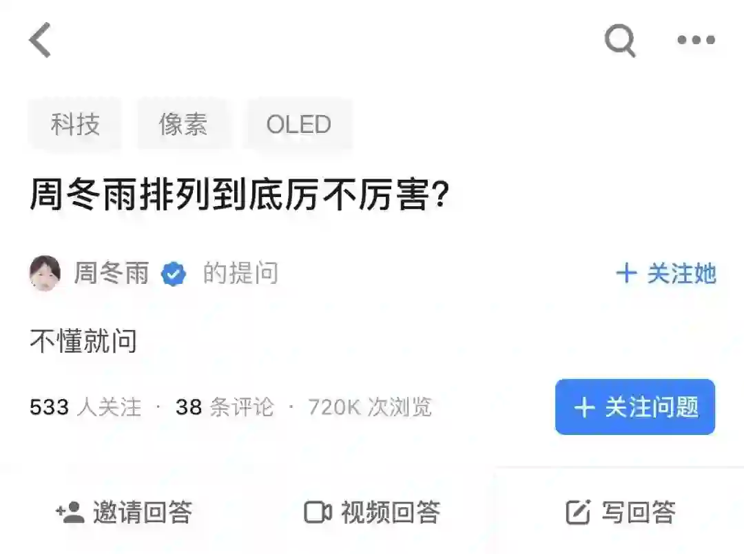 这时候,京东方(BOE)的“周冬雨排列”因为华为P30 Pro的使用,在手机市场掀起了一场“腥风血雨”。由于技术较新,“周冬雨排列”的类RGB-Delta带来了PPI(Pixels per inch)像素密度严重折损的问题,同时也带来了偏色的可能性。