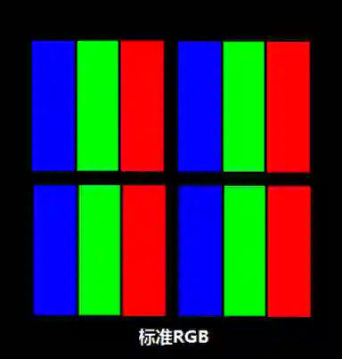 iPhone11使用的LCD屏幕,放大来看就是上图这样的“蓝绿红”像素点组成的。三个像素点大小统一,同样的分辨率显示更加细腻。