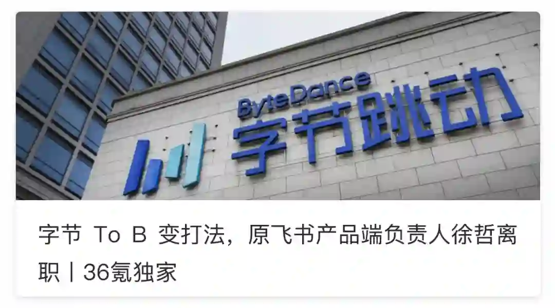36氪独家获悉,字节跳动旗下在线办公产品“飞书”的产品端负责人徐哲,已经于今年2月底离职,目前徐哲计划在电商SaaS工具领域创业,“和不少投资人接触过,最后拿了真格的钱。”