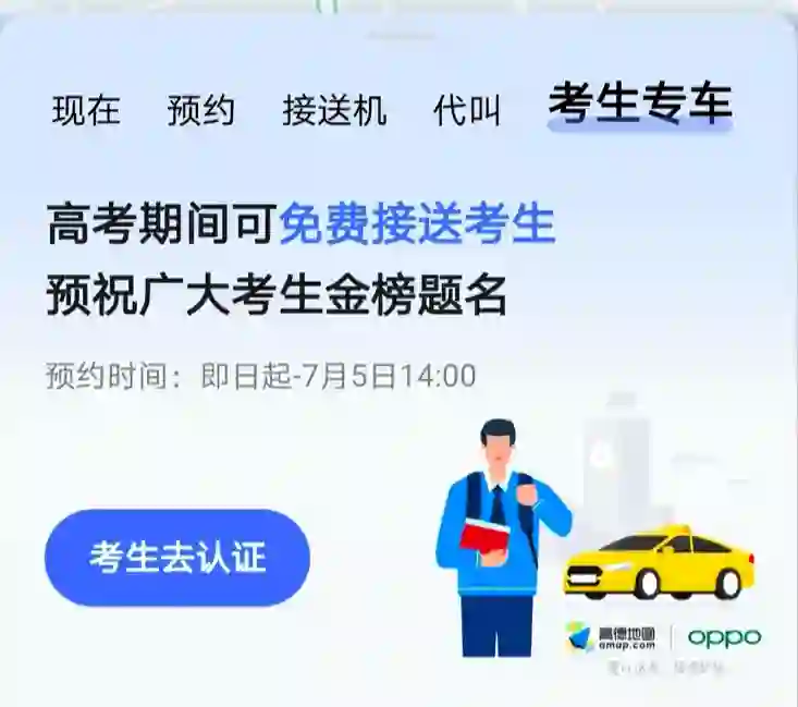 高德打车考生专车上线,多城高考考生6月30日起可预约免费接送