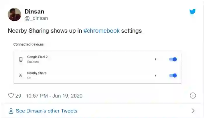 据外媒报道,此前几个月中一直有传言称谷歌将为Android手机添加一个类似苹果AirDrop的新功能。如今,谷歌终于证实,他们的确将推出这个功能,其正式名称为“Nearby Share”。一些Android手机用户已经测试了该功能的beta版本。(新浪科技)