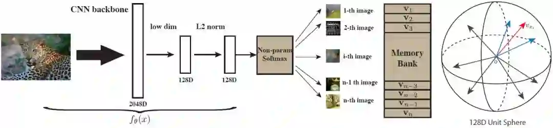 研究者提倡在训练和测试时都采用非参数化方法。他们将实例级别的分类看作度量学习问题,其中实例之间的距离(相似度)是以非参数方式直接从特征中计算得到的。也就是说,每个实例的特征都存储在离散的内存块中,而不是网络中的权重。