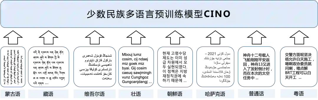 CINO基于多语言预训练模型XLM-R开发,在多种少数民族语言语料上进行了二次预训练,提供了藏语、蒙语(回鹘体)、维吾尔语、哈萨克语(阿拉伯体)、朝鲜语、壮语、粤语等少数民族语言与方言的理解能力。
