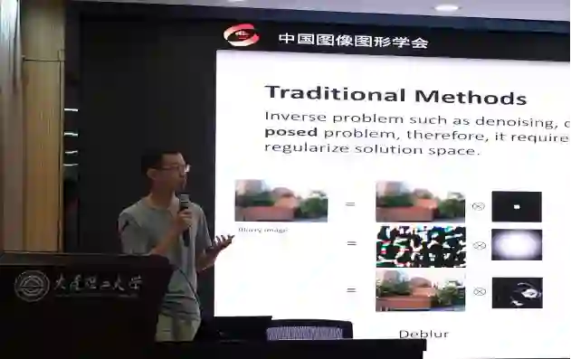 来自大连理工大学的贾旭副教授带来了题目为“基于内在信息先验的底层视觉研究”的报告,介绍了其研究组在使用图像成像的先验进行图像和视频恢复的研究成果,从基于单张图像进行自监督去噪、使用Bayer模式绿色通道和密度图进行联合去马赛克和去噪,以及通过对结构和细节分量进行解耦实现高效视频超分等方面对内在信息先验在底层视觉研究上的应用进行了分享,并对使用事件相机进行图像处理进行了简要的介绍和展望。