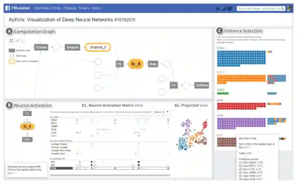 一个解决方案是神经网络模型的可视化,社交媒体巨头 Facebook 与 Georgia Tech 的研究人员正聚焦于这一方案。Facebook的深度学习用例并不限于图像分析,这意味着不同的数据类型被馈送到了模型中。不幸的是,用于神经网络可视化的大多数工具集中在图像数据集上,这激发了 Facebook 一款称为 ActiVis 的开发工具的研究,这是一个用于解释大规模神经网络模型和结果的交互式可视化系统。