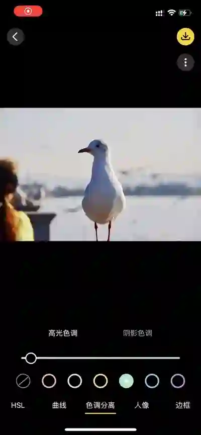 方弗相机可以调节高光颜色与阴影颜色,在色调分离部分,可以选择高光,并单独设置高光颜色,也可以选择阴影,单独设置阴影颜色。高光可设置的颜色分别是:粉红、卡其、黄色、浅绿、浅蓝、淡紫;阴影可设置的颜色分别是:红色、橙色、黄色、绿色、蓝色、紫色。