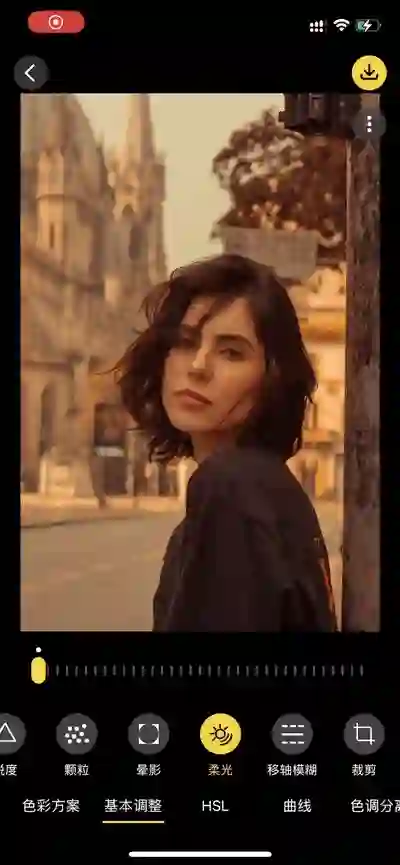 通过柔光功能,可以打造比较梦幻的柔光效果,类似于使用专业相机拍摄时,使用柔光镜的效果。