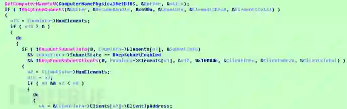 当检测到主机为服务器或者域控时,会枚举该主机DHCP已分配的IP信息,保存在列表中用于网络攻击。