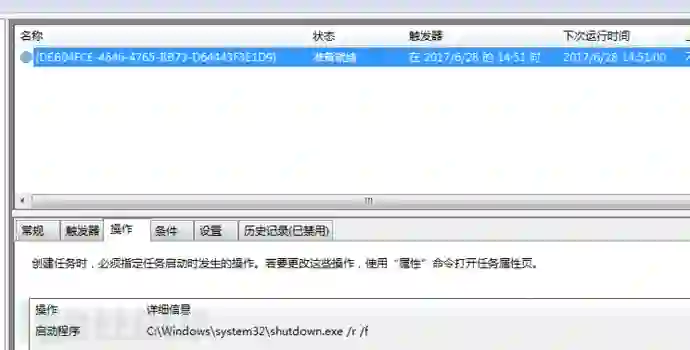 创建计划任务,设定当前时间1小时后重启计算机。